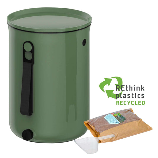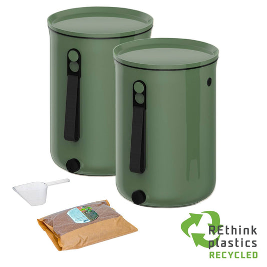 Biojäätmete komposter Bokashi Organko Essential oliiviroheline komplekt 2 x 15,3 L