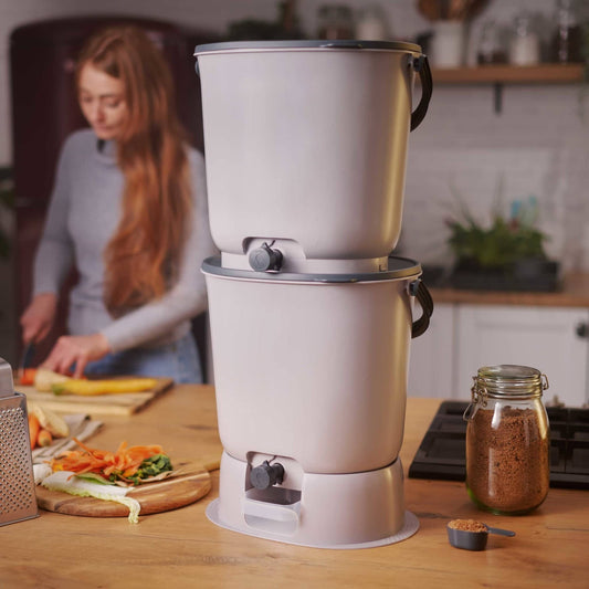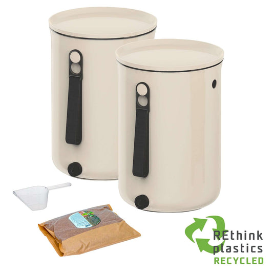 Biojäätmete komposter Bokashi Organko Essential cappuccino komplekt 2 x 15,3 L