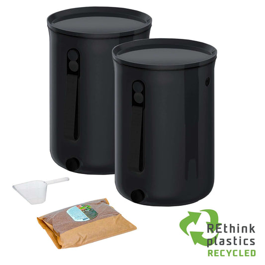 Bokashi Organko 2 Ocean köögikomposter must komplekt 2 x 9,6 L