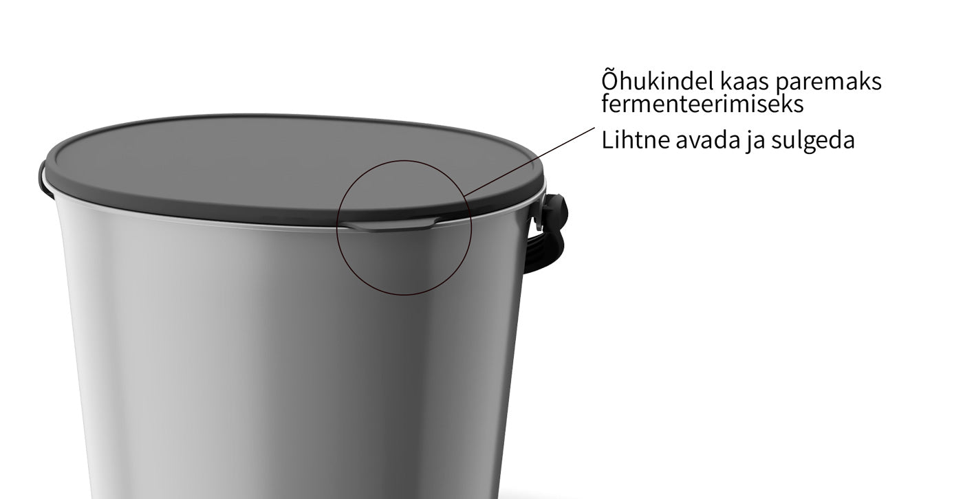 • Kasuta Bokashi kompostrit mahuka ja 100% lõhnakindla tubase bioprügikastina ning tühjenda selle sisu prügikasti kord või paar kuus