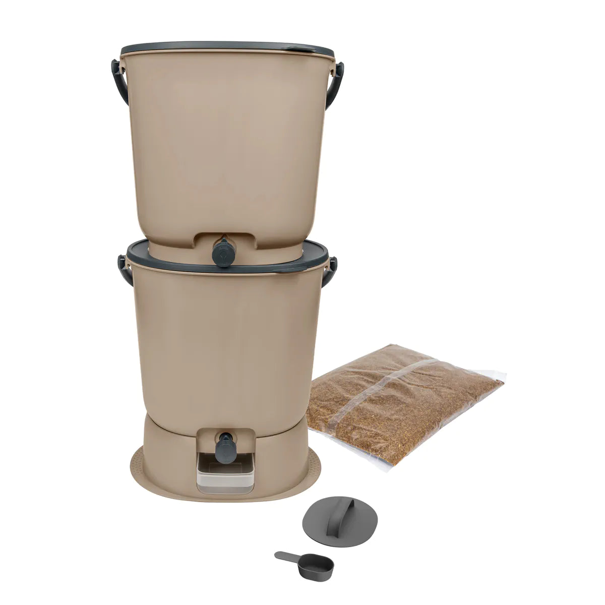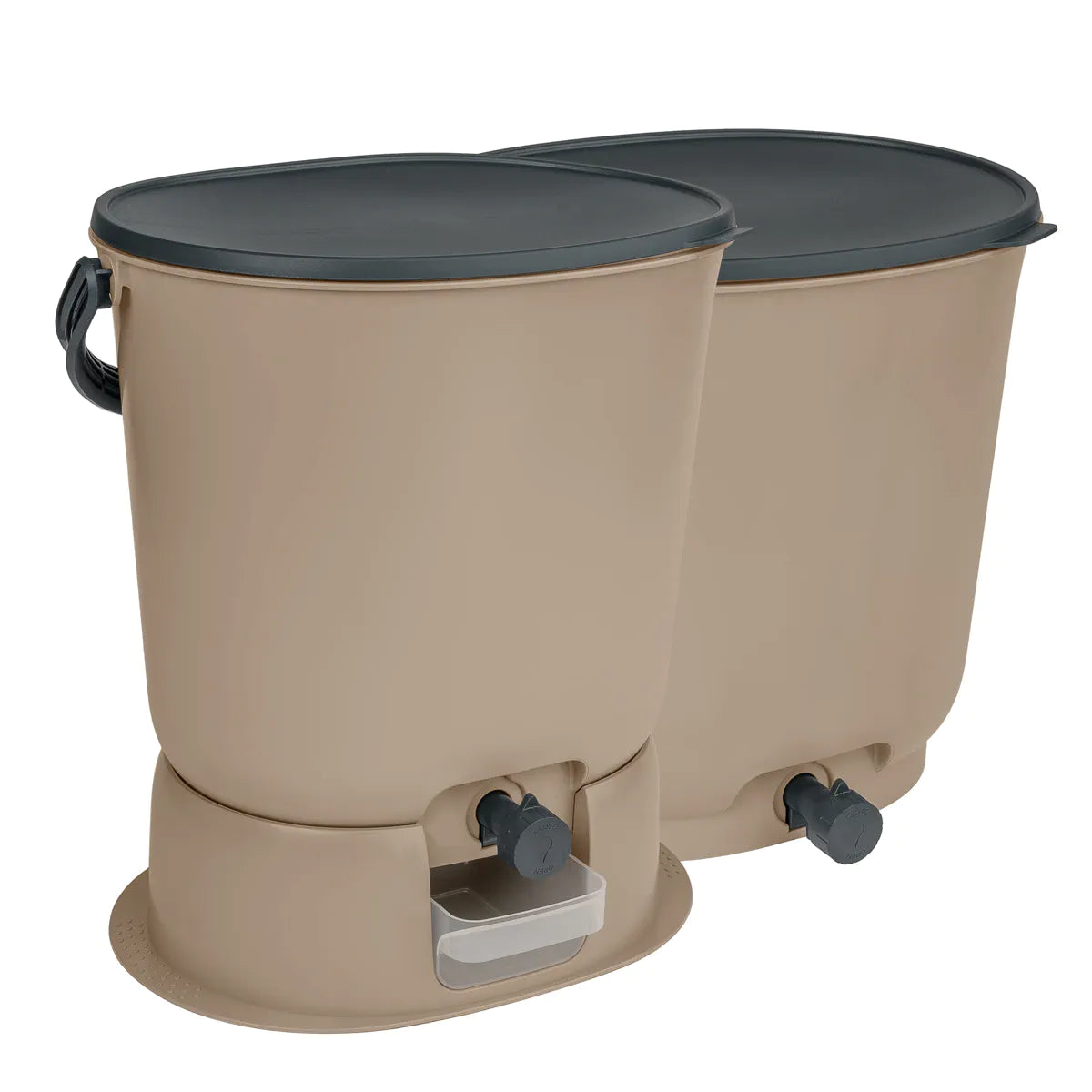 Komplekti kuulub 2 kompostrit – ühe kompostri täitumisel ja käärimisprotsessi lõppemise ootel saad mugavalt alustada biojäätmete kogumist teise anumasse.