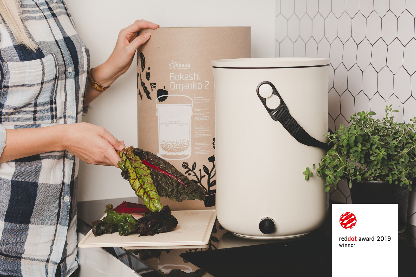 Bokashi Organko 2 köögikomposter on valmistatud ümbertöödeldud plastikust Euroopa Liidus ja pärjatud Red Dot disainiauhinnaga. Värvivalikus on lisaks valgele veel ka cappuccino-beež, oliiviroheline ja must.